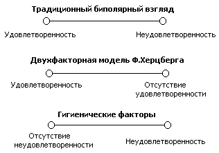 Рис. 1. Традиционный подход к оценке удовлетворенности трудом и двухфакторная модель Ф. Герцберга