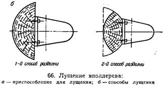 Лущение вполдерева применяют для производства шпона ценных пород. При этом к специальной план шайбе винтами прикрепляют предварительно распиленную половину кряжа, причем заготовка может быть прикреплена к планшайбе одним из показанных на, способов.