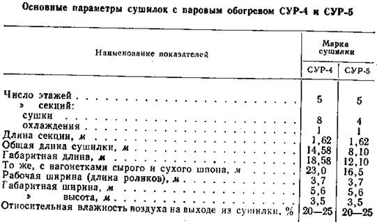 В табл. 22 приведена техническая характеристика сушилок СУР-4 и СУР-5, в табл. 23—техническая характеристика сушилок СРГ-50 и СРГ-25,