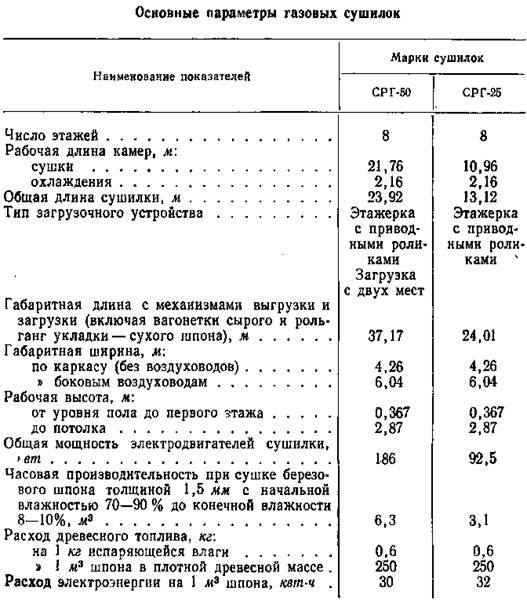 В последние годы широкое распространение получили конструкции роликовых сушилок с обогревом топочными газами, в которых осуществляется высокотемпературная сушка шпона. Роликовые сушилки с обогревом топочными газами изготовляют двух марок: СРГ-50 с производительностью 50 м3 шпона в смену и СРГ-25 с производительностью 25 м3 шпона в смену.