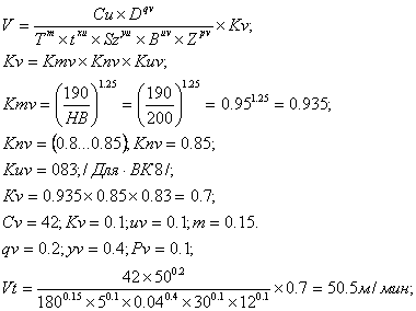 So=0.2мм/об; Sz=(0.23…0.5)мм/об;