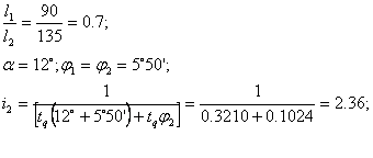 где i=i1+i2 – соответственно передаточная отношения рычажного и клинового механизма.