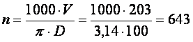 Частота вращения шпинделя, соответствующая найденной скорости резания