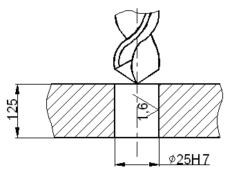 На вертикально-сверлильном станке 2Н125 обработать сквозное отверстие диаметром 25Н7 (Ra=1,6 мкм), l=125 мм. Материал заготовки СЧ18, НВ210.
