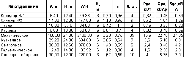 где А,В – длинна и ширина помещения , определяемые по плану цеха, м;