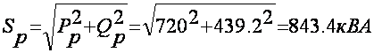 Расчетная полная мощность сети низкого напряжения цеха без учета мощности компенсирующих устройств определяются без учета потерь мощности в сетях НН цеха в связи с их малой протяженностью по выражению: