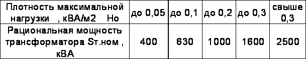 Рекомендуемая номинальная мощность цеховых трансформаторов в зависимости от плотности нагрузки приведена в табл. 5.