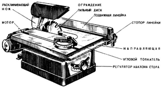 Необходимым приспособлением является также подвижная линейка, которая устанавливается на нужном расстоянии от плоскости пильного диска и обеспечивает прямолинейность распиловки.