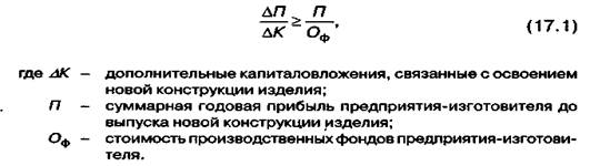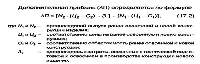 С производственной точки зрения новая конструкция будет считаться технологичной, а следовательно, и эффективной в том случае, если дополнительная прибыль (АП), полученная в результате освоения, выпуска и реализации новой продукции, обеспечит рентабельность не ниже средней сложившейся рентабельности на предприятии-изготовителе. Этому условию должно удовлетворять неравенство: