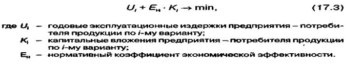 Если эксплуатационные свойства новой техники повышаются по сравнению с ранее освоенной (заменяемой), то экономическая эффективность ее определяется путем соизмерения капитальных вложений потребителя со снижением себестоимости работы, выполняемой новой техникой. Лучшим признается вариант с наименьшей суммой приведенных затрат: