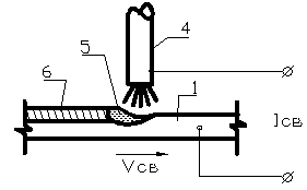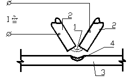 1 – сварочная дуга; 2 – электрод; 3 –свариваемое изделие; 4 – жидкий металл | |