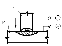 В процессе сварки на основном металле (аноде) образуется углубление, называемое кратером. Расстояние между концом электрода и дном кратера называют длиной дуги lд. Причины образования кратера не очень ясны и на этот счет существует три гипотезы.