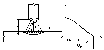 Возрастающая (положительная) вольт-амперная характеристика дуги (обл.Ш) (рис.2.3) получается при большой силе тока (при автоматической сварке под флюсом или при сварке в среде защитных газов).