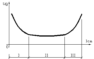 Зависимость напряжения дуги от силы сварочного тока называется статической вольт-амперной характеристикой дуги. В общем виде статическая характеристика имеет вид (рис. 2.3). При малых значениях Icв в электроде (обл. I) статическая хар-ка дуги падающая (отрицательная).