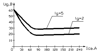 Из этого уравнения следует, что при прочих равных условиях, напряжение на дуге будет зависеть от длины дуги (рис.2.3). Из рис. 2.4 видно, что с возрастанием тока – Iсв до (30-50)А – напряжение падает резко, а далее остается почти постоянным. В момент зажигания дуги для ионизации газа требуется напряжение (30-60)В, а при установившемся режиме дуги требуется в 1,5-2 раза меньшее. Напряжение горения дуги при токах более (50-60) А не зависит от силы тока, а только от длины дуги, изменяясь пропорционально ей.