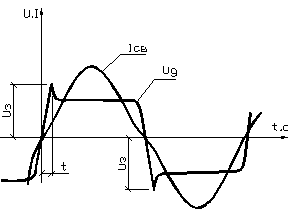 Электрический режим дуги переменного тока обладает рядом особенностей. Характер изменения I и U в электрической дуге переменного тока выражается кривыми (рис.2.5). Если кривая I почти не искажается, то кривая U искажена резко.