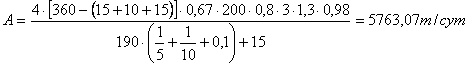 Vp – рабочая скорость подачи комбайна (5 м/мин);