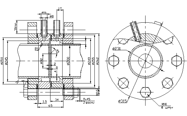 В качестве сужающего устройства будем использовать камерную диафрагму ДКС-10-80 (ГОСТ 26969-86) которая изображена на чертеже (лист1). Размеры диафрагмы выбираем согласно условному проходу и условному давлению согласно ГОСТу. Для установки диафрагмы на трубопроводе используются фланцы ГОСТ 12820-80. Диафрагма должна устанавливаться на прямых участках трубопровода, на котором на должно быть местных сопротивлений. Должна быть соблюдена строгая соосность между трубопроводом и сужающим устройством. При установке сужающего устройства в соответствии с этими требованиями достигается высокая точность измерений.