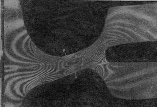 Таким образом, мы привели примеры исследования прочности на двух типах резиновых деталей методом фотоупругости. Этим же методом может быть проведено исследование напряженного состояния других деталей. Очевидно, оптический метод может быть также применен для исследования релаксации напряжений, герметичности, динамики и т. д.