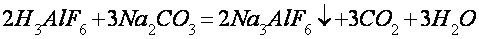 , в результате чего образуется вторалюминиевая кислота, которую нейтрализуют содой и получают криолит, выпадающий в осадок: