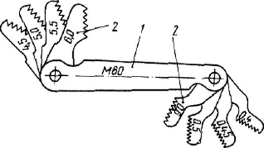 Резьбовой микрометр имеет в шпинделе и пятке посадочные отверстия, в которые устанавливаются комплекты сменных вставок, соответствующие измеряемым элементам резьбы. Для удобства измерений резьбовой микрометр закрепляют в стойке и настраивают по шаблону или эталону резьбы. При настройке микро метра по резьбовым эталонам погрешность измерений составляет 0,01 — 1 мм.