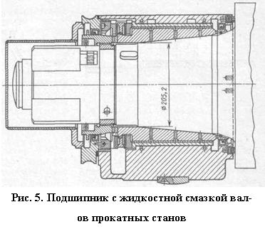 Одним из возможных направлений развития подшипников скольжения может явиться выполнение их в виде отдельных агрегатов, включающих кольцо, насаживаемое на вал и образующее цапфу (по аналогии с подшипниками качения). Простейшим примером могут служить так. называемые шарнирные подшипники для качательного движения, стандартизованные и изготовляемые подшипниковой промышленностью (рис. 4). К агрегатным подшипникам могут быть отнесены подшипники с жидкостной смазкой для валков прокатных станов (рис. 5). Валки своими конусными шейками входят в конусные втулки, которые образуют собой цапфу. Это позволяет легко менять валки.