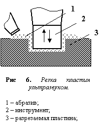 Одной из новейших технологий является резание при помощи ультразвуковых колебаний частиц абразива. Ультразвуковая резка применяется при обработке полупроводниковых пластин в тех случаях, когда необходимо получить кристаллы сложной конфигурации и заданного профиля.
