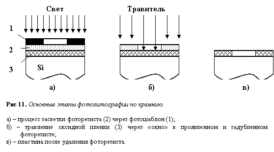 Сущность процесса литографии заключается в следующем. Литография представляет собой сложный технологический процесс, основанный на использовании явлений, происходящих в актинорезистах при актиничном облучении.