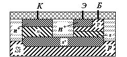 Процесс «Изопланар II» позволяет получать структуры с эмиттерными областями, выходящими боковой стороной на слой изоляции. Приконтактные n+-области коллекторов расположены в самостоятельных карманах, соединенных с эмиттер-базовыми карманами, скрытыми n+-областями. Этот процесс предъявляет менее жесткие требования к точности совмещения слоев, так как окно смещается в диоксид, диффузия эмиттерной примеси в который не происходит. Базовую диффузию можно проводить по всей площади карманов, что также упрощает процесс.