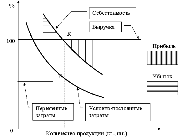Рис.1.2. График безубыточности: зависимость относительных затрат.