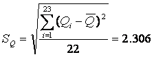 Для n=23 определим νq=2.683. Сравним ν с ν q. Так как νmax > ν q, то данный результат измерения Q23 является ошибочным, он должен быть отброшен. После этого повторим вычисления для сокращенной серии результатов измерений