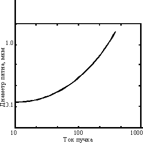 Рис. 15. Зависимость между током электронного пучка и его диаметром.