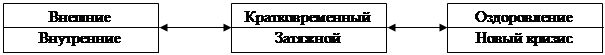 Кризисы неодинаковы не только по своим причинам и последствиям, но и по самой своей сути. Необходимость в разветвленной классификации кризисов связана с дифференциацией средств и способов управления ими. Если есть типология и понимание характера кризиса, появляются возможности снижения его остроты, сокращения времени и обеспечения безболезненности протекания (рис. 1).