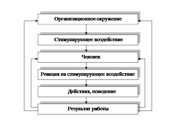 üЧеловек, взаимодействуя с организационным окружением, получает от него побуждающие к действию стимулирующие воздействия.