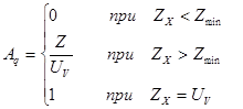 При условии полного использования грузоподъемности кузова функция порогового коэффициента «адаптации» по объему (Ау):