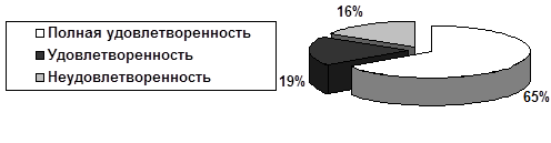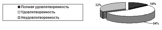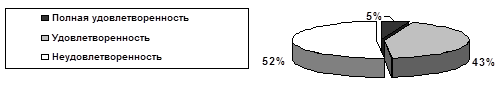 Полностью удовлетворены данной категорией всего лишь 5% опрошенных, 43% удовлетворены данной категорией, однако имеют определенные трудности в использовании своих знаний, умений и навыков. Особое внимание следует обратить на то, что более половины опрошенных –52% не удовлетворены данной категорией, т.е. при выполнении работы они не испытывают чувства успеха и удовлетворенности за свой труд.