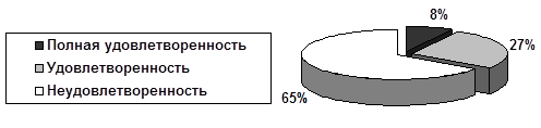 К сожалению данной категорией полностью и абсолютно не удовлетворен ни один из опрашиваемых, частично удовлетворены лишь 35%. Большинство опрашиваемых – 65% не удовлетворены данной категорией, что означает почти полное отсутствие обратной связи между руководством организации и ее работниками. Работники организации не получают должного признания за выполняемую работу.