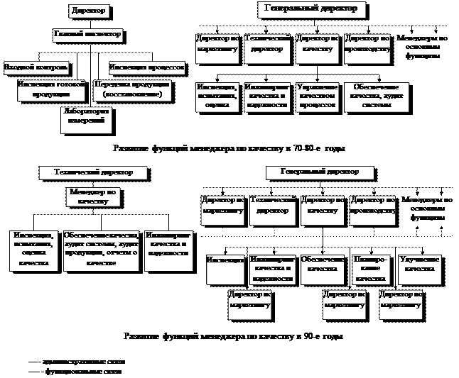 Рис. 2.4. Развитие организационных схем управления качеством и основных функций менеджера по качеству в ХХ веке