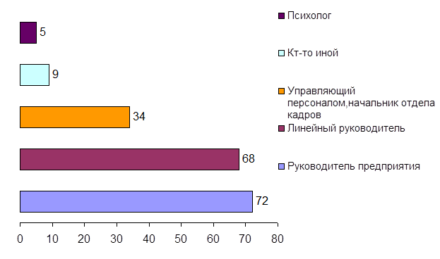 практически совпадает с эффективностью участия в собеседовании руководителей предприятия (76 % и 75 % соответственно). И это вполне закономерно, так как опытный кадровик подбирает кандидата под руководителя, зная его предпочтения и взгляды.