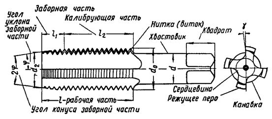 l = 5…10, такая заточка обеспечивает отвод стружки в направлении подачи метчика.
