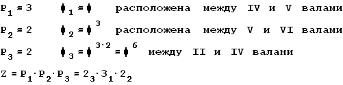 между валами II – IV структурная формула может быть записана как сложенная: