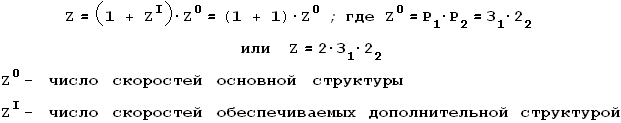 Сложенная структура представляет собой сумму обычных множительных структур и как бы содержит две и более кинематических цепей. Одна структура – основная, она используется для получения всех скоростей на шпинделе, остальные – дополнительные, они используются для части скоростей.