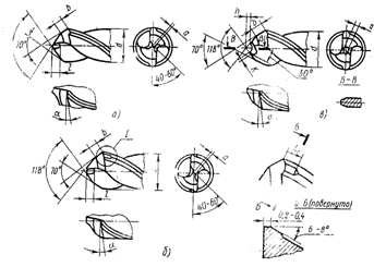 Для уменьшения трения при работе сверл кромку ленточки подтачивают, с сохранением фаски 0,1 .0,3 мм.