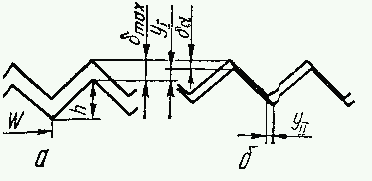 Первая попытка количественной оценки влияния шероховатости поверхности разрушения на закрытие усталостной трещины сделана на основании сопоставления высоты микронеровностей в изломе и раскрытия вершины трещины. Однако оценка роста усталостной трещины по такой упрощенной модели приводили к значительному занижению результатов, поскольку не учитывается роль сдвиговой деформации в вершине трещины. Указанный недостаток устранен в позднее предложенной геометрической модели ЗТШ (рис. 6), согласно которой величина эффекта закрытия записывается в виде