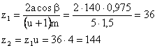 Принимаем угол наклона зубьев β = 12˚50΄19˝, а модуль m = 1,5 мм и определяем числа зубьев шестерни и колеса: