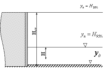 h – расчетное значение высоты волны, м, принимаем h = 0,5 м,