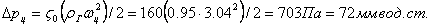 Предварительно определив условную скорость газа в цилиндрической части циклона