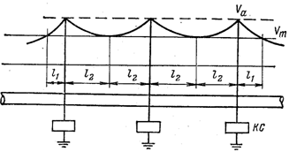 При наложении потенциала катодными станциями на трубопровод распределение его вдоль последнего происходит по кривым (рис. 4),