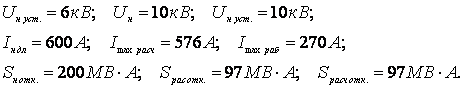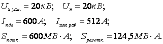 Выбираем предварительно для В2, В3, В4 и линий, отходящих от шин ГВП, выключатель ВМП-20 с номин. и расчётными данными: