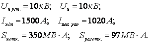 для линий, отходящих от шин ГПП, при 6 и 10 кВ ВМП-10П с номинальными и расчётными данными: